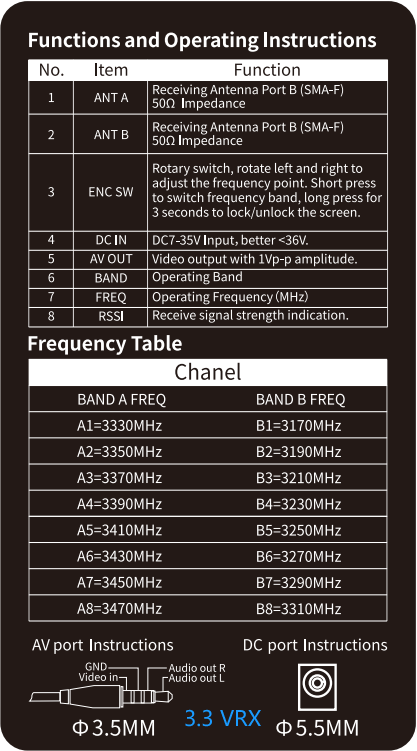 DMKR 3.3GHz VRX Box 16CH(3170MHz-3470MHz) Video Receiver for FPV